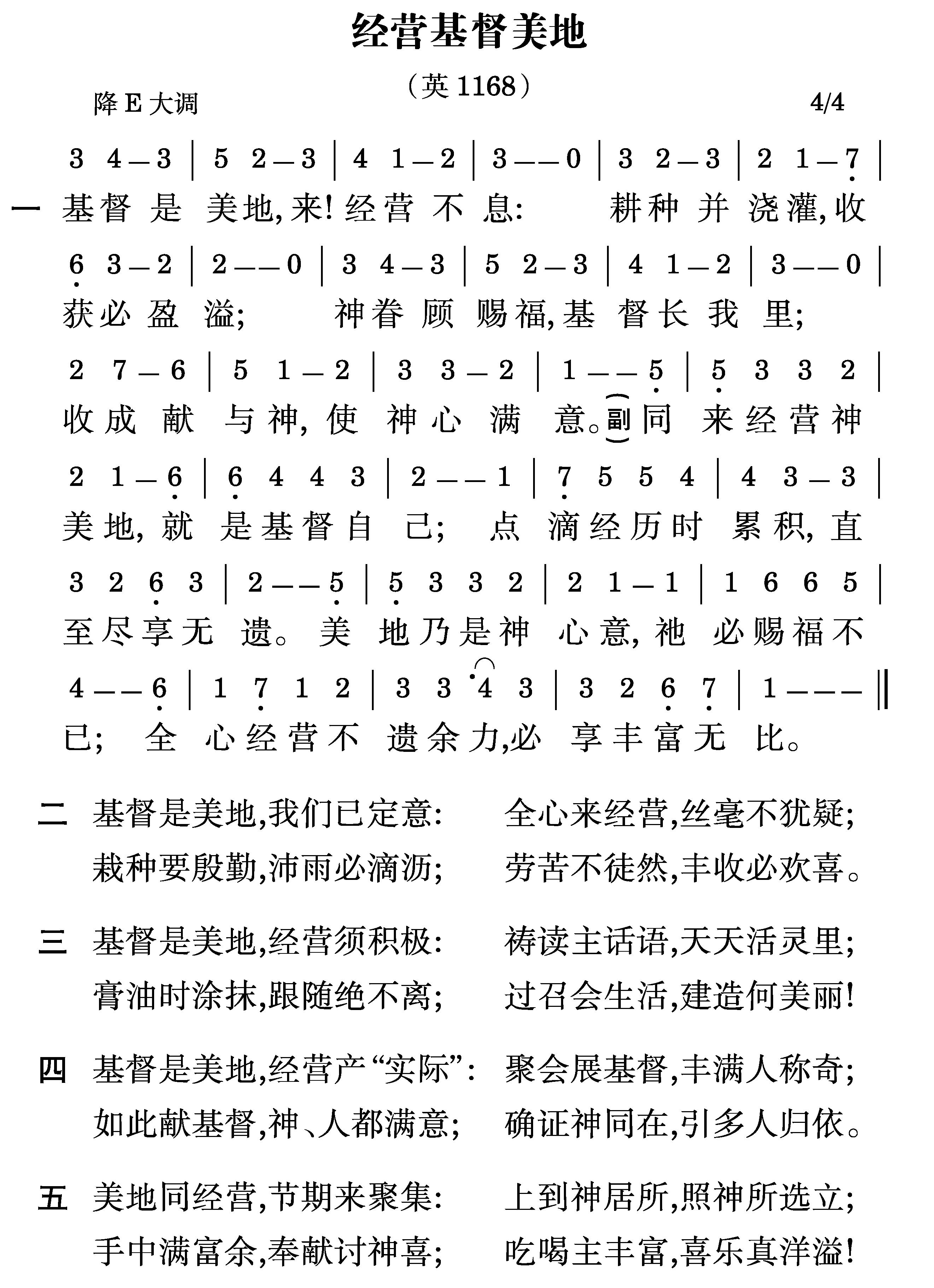 得着美地以后的生活乃是一个经营基督的生活。这一个生活是把基督当作我们的实业,大量地出产基督。我们是替“基督股分公司”作事,我们天天都在出产基督。……我们是栽种基督,出产基督。我们是昼夜殷勤地在基督这块田地上耕作。我们是快乐地作工,这工作对于我们是何等的安息。……请想想看,当以色列百姓占得美地,征服所有的仇敌之后,……他们就是经营那地。他们耕地、撒种、浇水、栽种葡萄树、修剪各种树木。这些都是享受那地所必须有的工作。这一幅图画说出,我们该如何在基督身上殷勤作工,使我们能享受祂包罗万有的丰富。这是我们的事业。基督是我们的实业;我们必须在祂身上作工,以出产祂的丰富。我们已经看见,美地在许多方面是多么丰富;但是若不在其上经营,怎能使这些丰富显出,并有大量的出产呢?