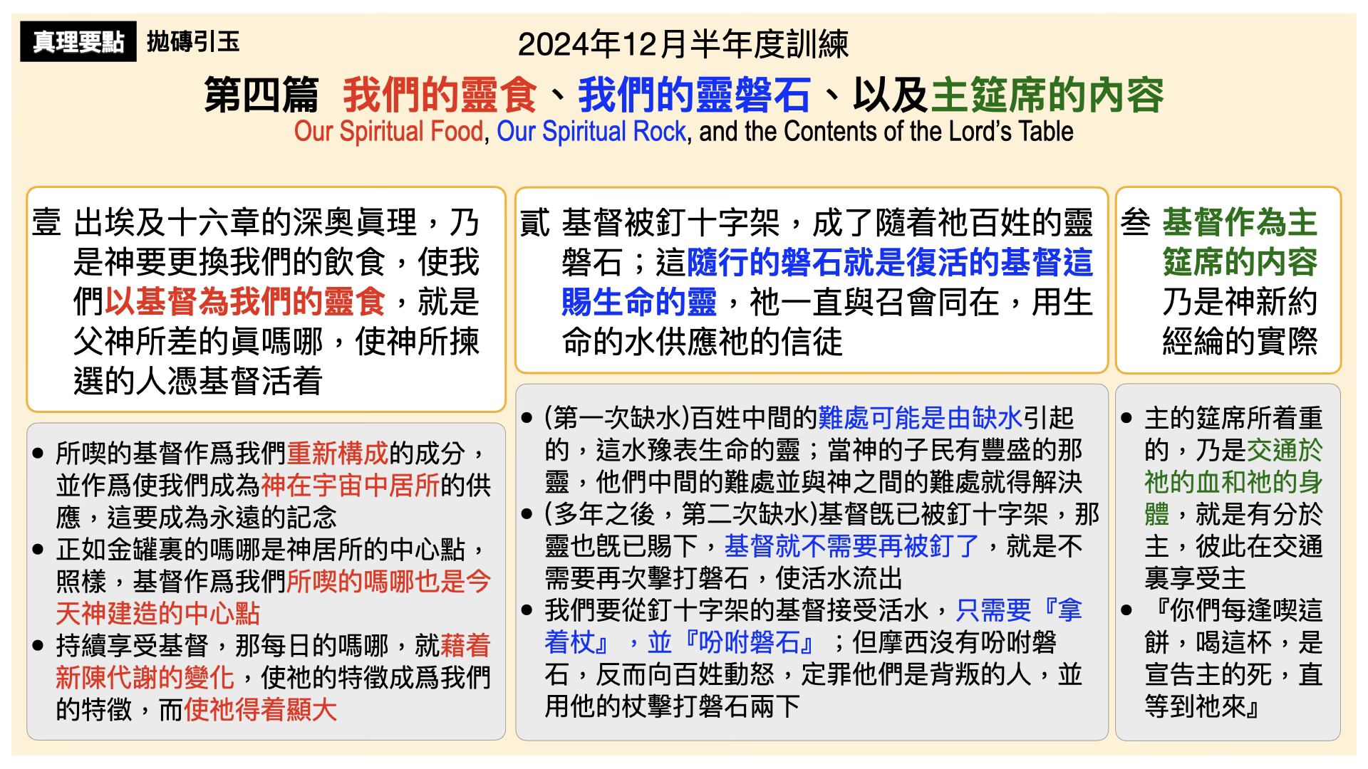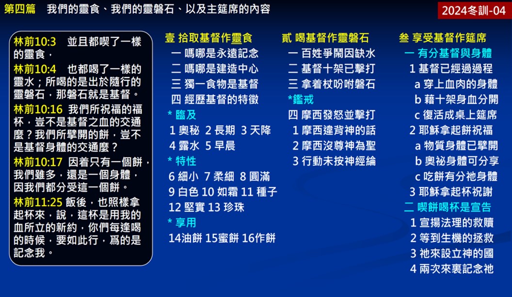 第四周 我们的灵食、我们的灵磐石以及主筵席的内容