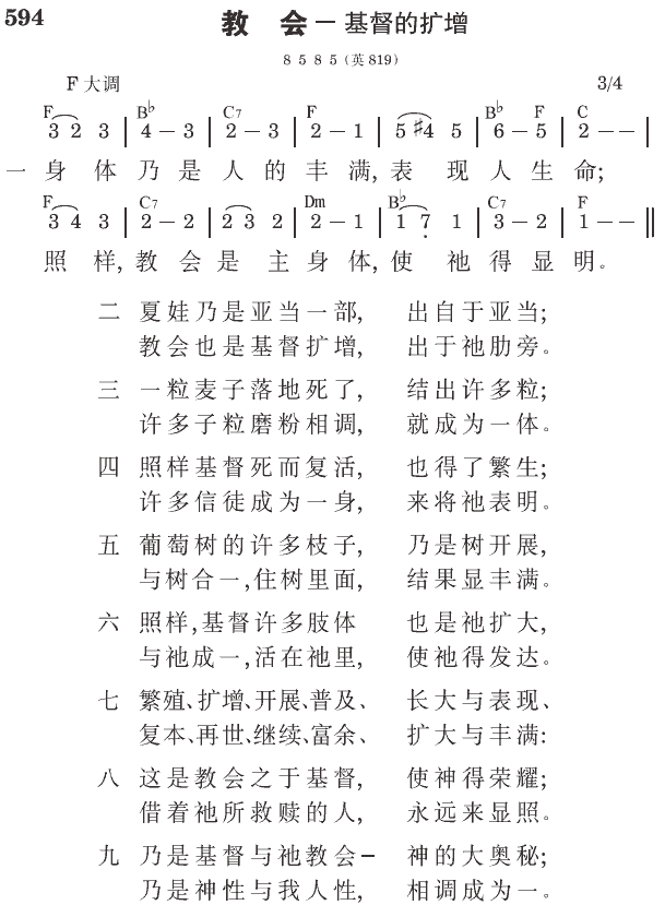 召会是基督的身体,基督是召会的头(西一18)。因此,召会和基督乃是一个身体,奥秘、宇宙的大人,有同样的生命和性情。基督是身体的生命和内容,身体是基督的生机体和彰显。召会是基督的身体,从基督接受了一切;所以,基督的一切都借着召会得彰显。基督与召会二者调和并联结为一,以基督为里面的内容,召会为外面的彰显。